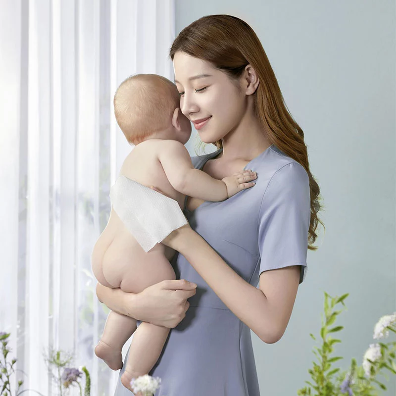 नवीन श्रेणीसुधारितवॉटर बेबी पुसतेउच्च-गुणवत्तेच्या नैसर्गिक सूती सामग्रीचे बनलेले आहेत, जे मऊ आणि स्पर्श करण्यासाठी अधिक नाजूक आहे आणि आईच्या हातांप्रमाणे बाळाच्या नाजूक त्वचेची काळजी घेते. एका विशेष प्रक्रियेनंतर, फायबर अधिक नाजूक आणि मऊ असते आणि स्पर्श ढगांइतके सौम्य असतो, ज्यामुळे बाळाला अभूतपूर्व आराम मिळतो.